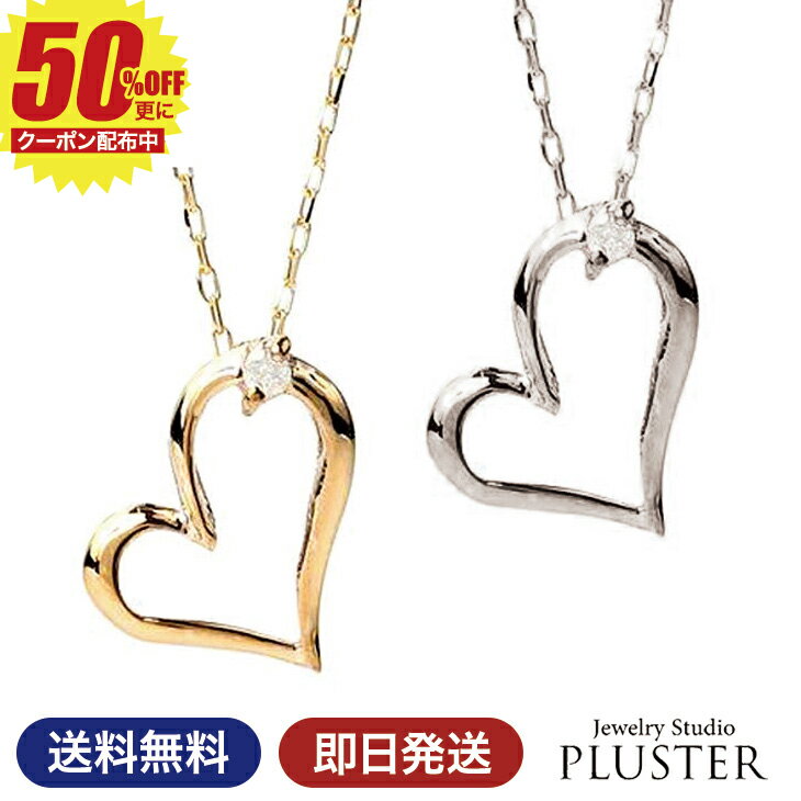 ネックレス レディース ダイヤモンド オープンハート ハート ダイヤネックレス ダイヤ 天然ダイヤ 10金 K10 ゴールド ペンダント ジュエリー アクセサリー 誕生日 プレゼント 女性 ギフト 誕生日プレゼント 10K ホワイトゴールド イエローゴールド ハートネックレス
