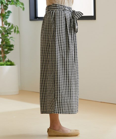 他のサイズは以下をご覧ください M/L はこちら共布リボン付ワイドパンツ ニッセン nissen ブルーストライプ 黒系チェック ネイビー カラー ブルーストライプ/黒系チェック/ネイビー サイズ LL 素材 品質=綿100% ウエスト後ゴム入 ポケット両脇 共布リボンは取り外しできます。
