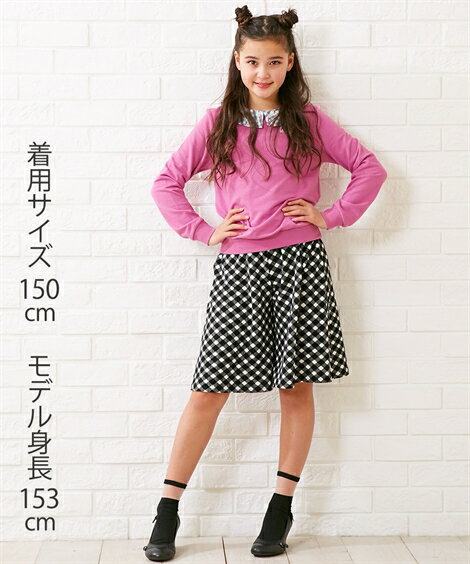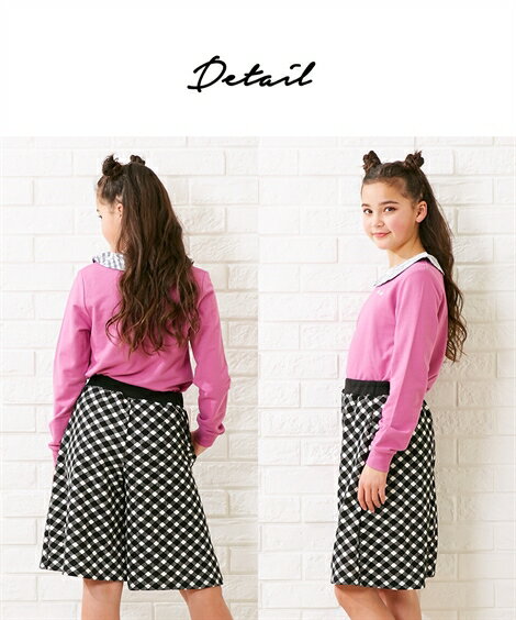 カットソーガウチョパンツ(女の子 子供服・ジュニア服) ニッセン nissen 黒(ギンガムチェック) 紺(ストライプ) カラー 黒(ギンガムチェック)/紺(ストライプ) サイズ 140/150/160 備考 単位:cm ※サイズの誤差は多少発生します。